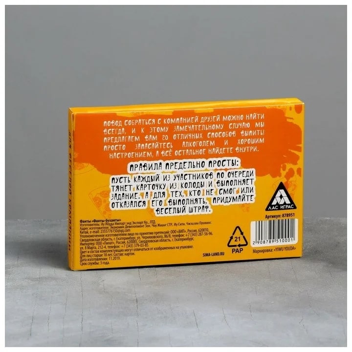 Купить игра для компании "фанты буханты" 20 карт от 100 руб. с доставкой до пункта выдачи в Амурске. Интернет магазин ДекаМаркет. Оплата при получении.